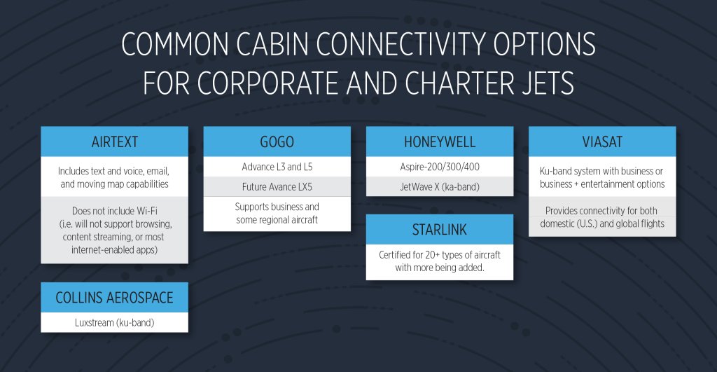 Wi-Fi technology and cabin connectivity options are constantly evolving in the private aviation world, with innovations in high-speed browsing, media streaming, and talk/text capabilities.